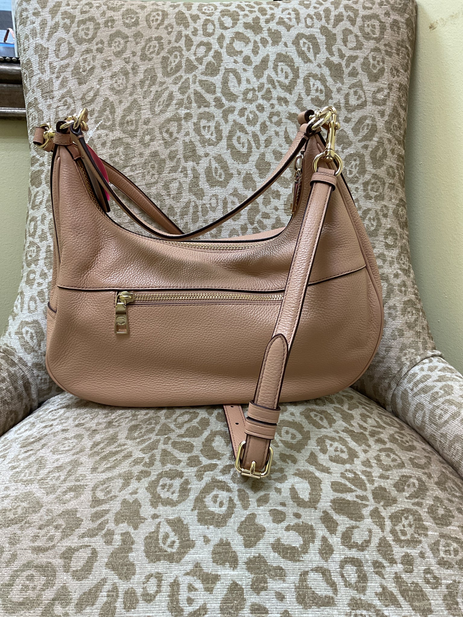 Up for sale is a Coach crossbody, that also had a shoulder strap. It measures 11" across the top, 10" tall and 5" wide at the base.