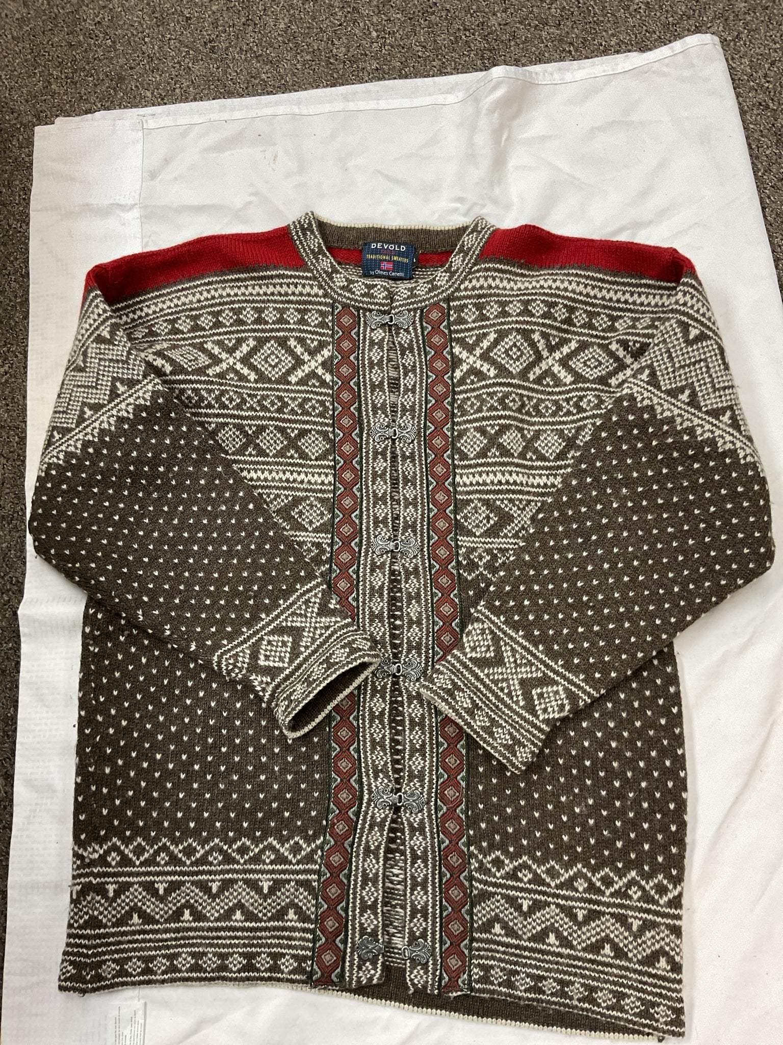 Devold Size L Brown Cardigan Norweigan sweater pure new wool Men's